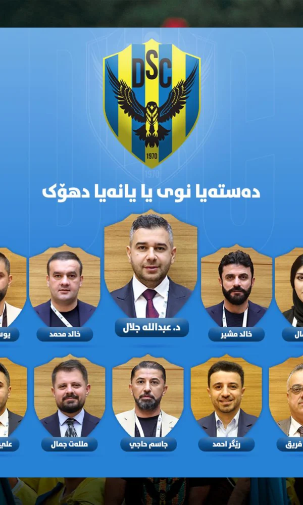 دەستەیا نوو یا یانەیا دهۆکMitan Agency24 ئهیلول 2025دەستەیا نوو یا یانەیا دهۆکێ ب دەنگێن ٢٢٣ دەنگدەران هاتنە هەلبژارتن. د. عەبدولا جەلال / سەرۆک یانە یووسف ڕەشید / ... ب شوپینە