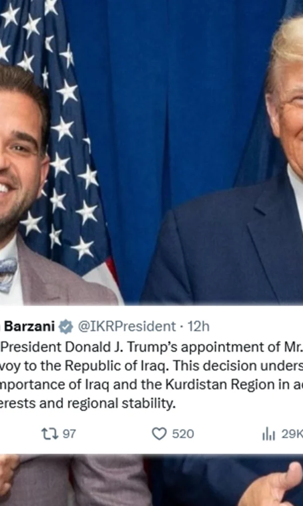 سەرۆک نێچیرڤان بارزانی پێشەوازییێ ل هنارتییێ نوو یێ ئەمریکا ژبۆ عیراقێ دکەتMitan Agency21 تشرینی یهكهم 2025میتان، سەرۆک نێچیرڤان بارزانی د تویتەکێ دا ل ئەکوانتێ خۆ یێ ئێکس هوسا نڤیسایە؛ ئەز پێشەوازییێ ل هنارتییێ نوو یێ ... ب شوپینە