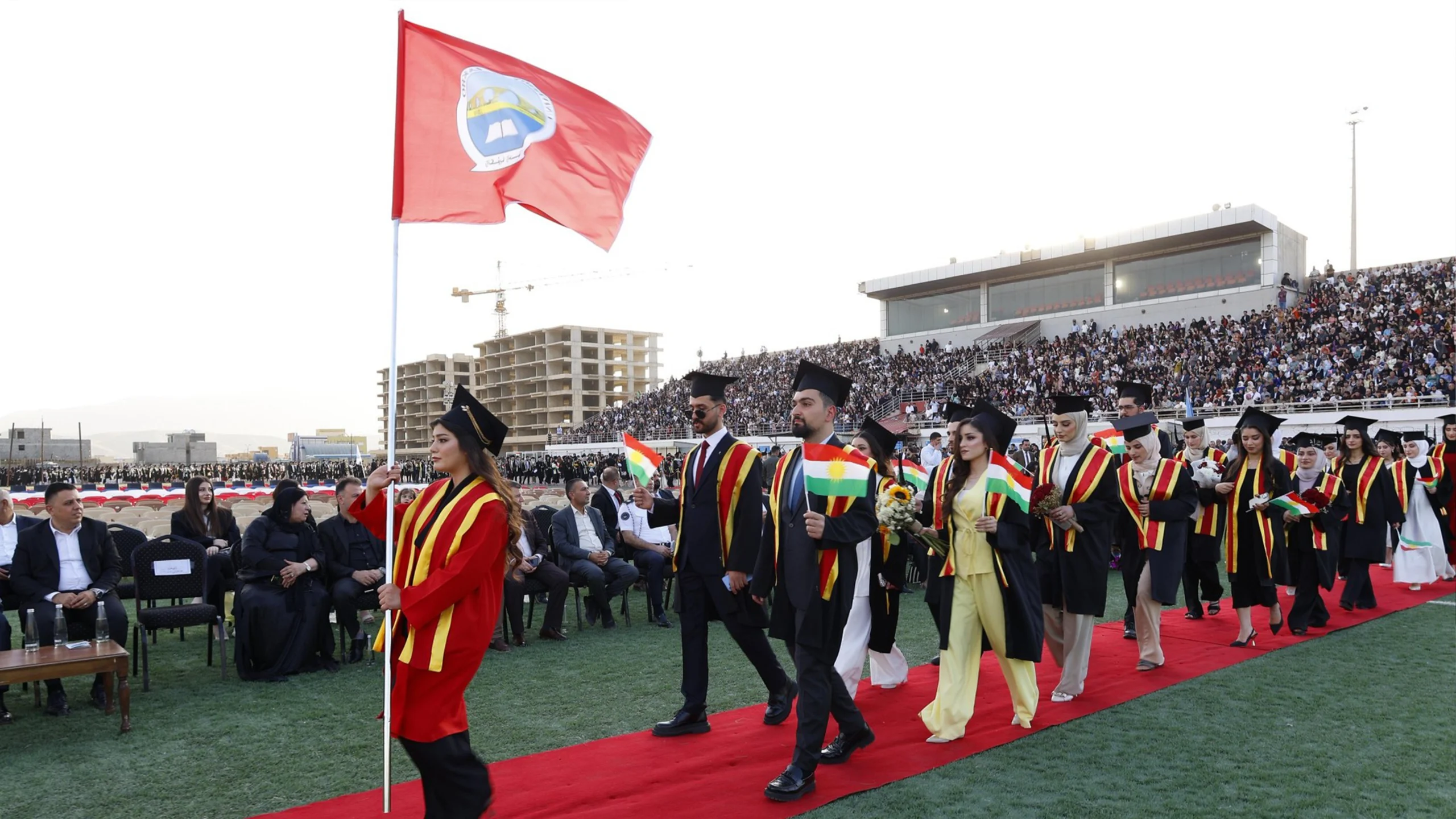 کار و چالاکییێن ئاهەنگێ ب پێشوازیەکا گەرم ل مێهڤانێن پلە بلند دەستپێکر، ل دویڤ دا ڕێپێڤانا شکۆدار یا دەرچوویان هات، کۆ پشک ل دویڤ پشکێ بەرەڤ جهێن خۆ ڤە چوون، کەشێ شادیێ بۆ دەمەکێ بێدەنگ بوو دەمێ خولەکەکا بێدەنگیێ بۆ ڕێزگرتن ل گیانێ پاکێ شەهیدێن کوردستانێ هاتیە ڕاگرتن، ڕێزگرتنەکا ژ دل، پاشان چەند ئایەتەکێن قورئانا پیرۆز هاتنە خواندن.