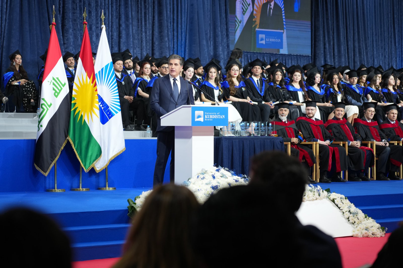 ل ڕۆژا پێنجشەمبی سەرۆک نێچیرڤان بارزانی بەشداری د ئاهەنگا دەرچووییێن زانکۆیا کوردستان – هەولێر دا کر. ل ئەڤێ گەڕێ (٥٢٦) قۆتابییان باوەرنامەیا باكلوريوس د بوارێن جودا جودا بدەستڤەهینان. سەرۆک نێچیرڤان بارزانی گۆتارەک بۆ هەموو خوێندکاران و هەموو مێهڤان دا و گۆت؛